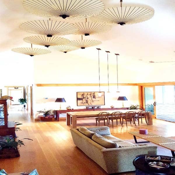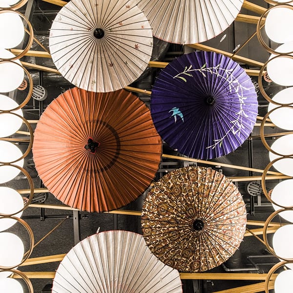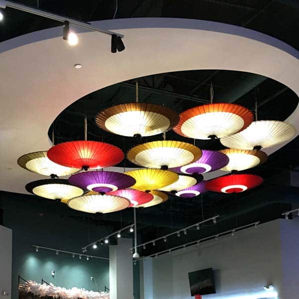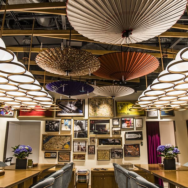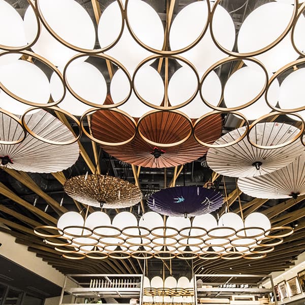 『光を柔らかく拡散させる、和紙の性質を生かした和傘のインテリア』