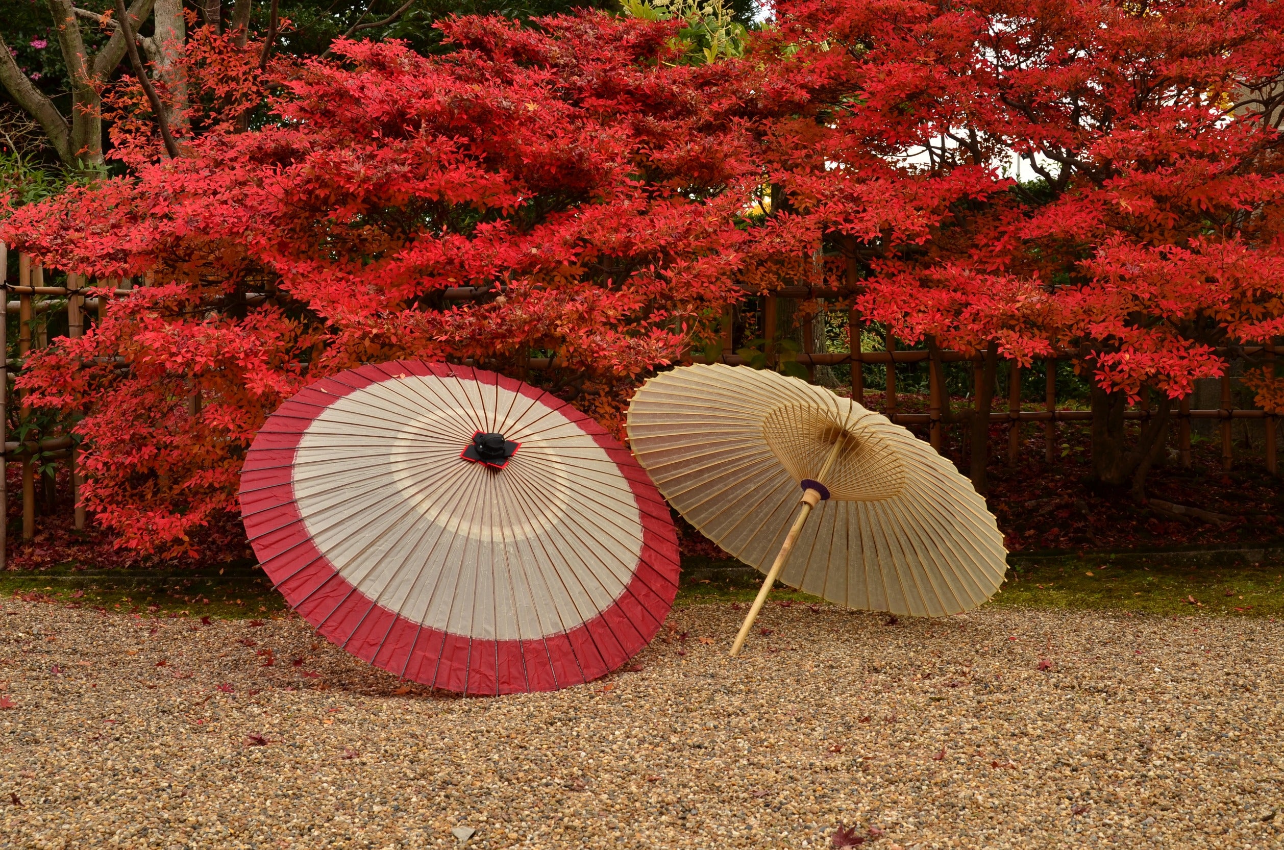 A bangasa blends into the quiet elegance of autumn,while a janome-gasa enhances the season’s vibrant hues—each revealing a different beauty in harmony with nature.