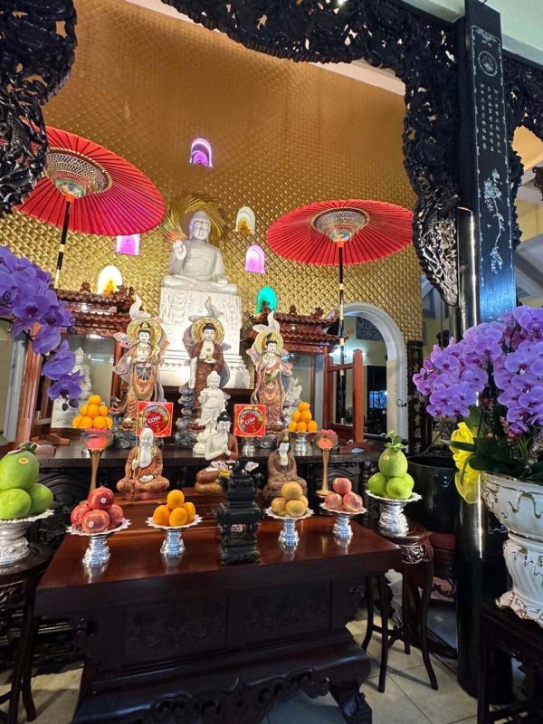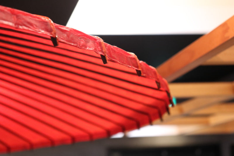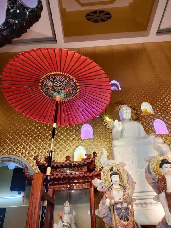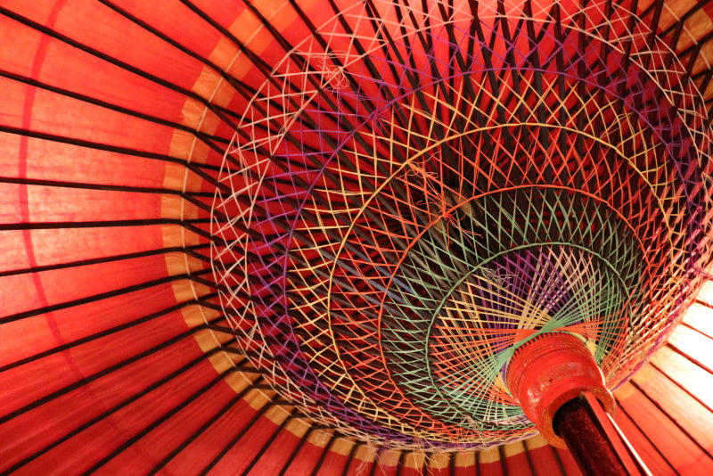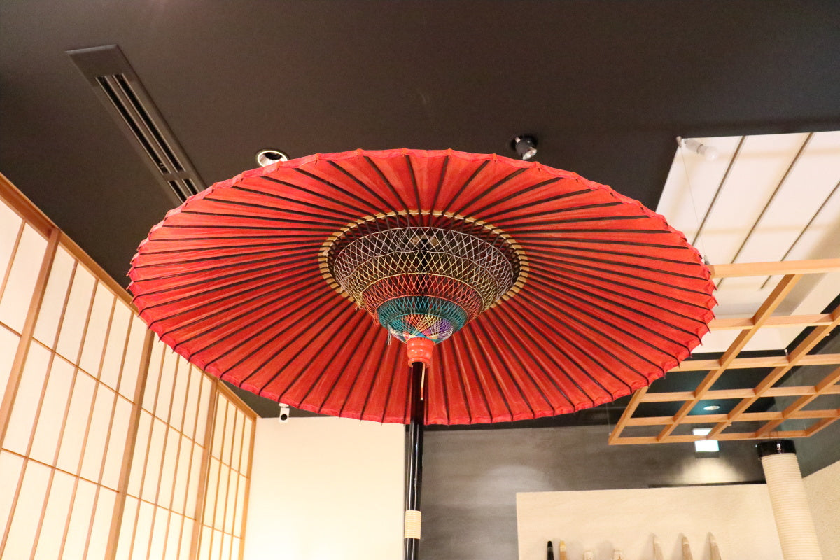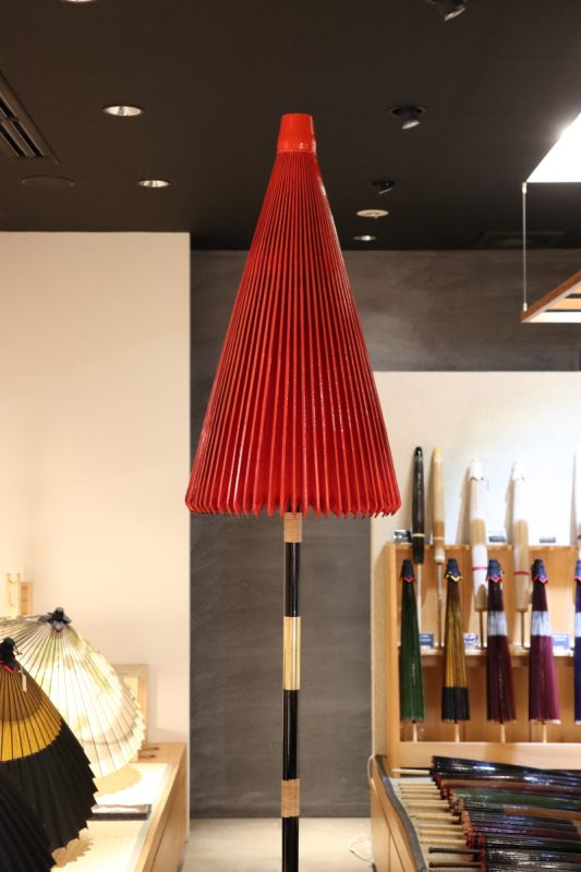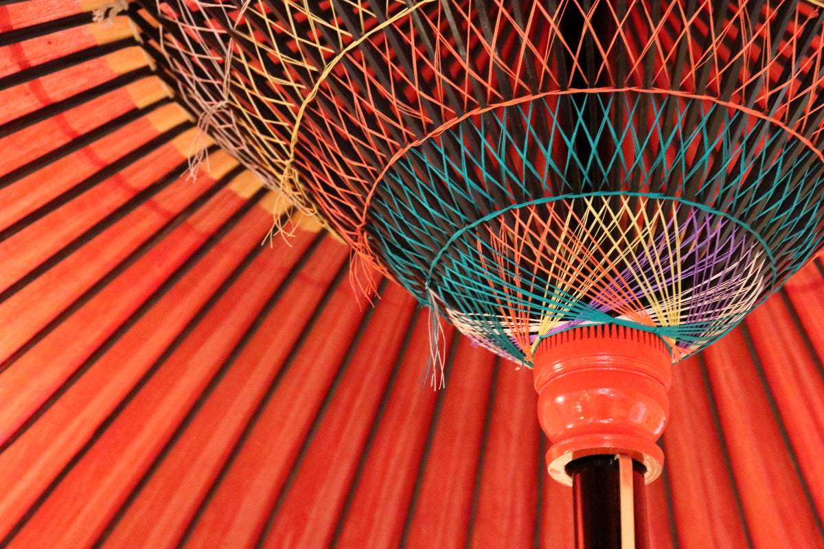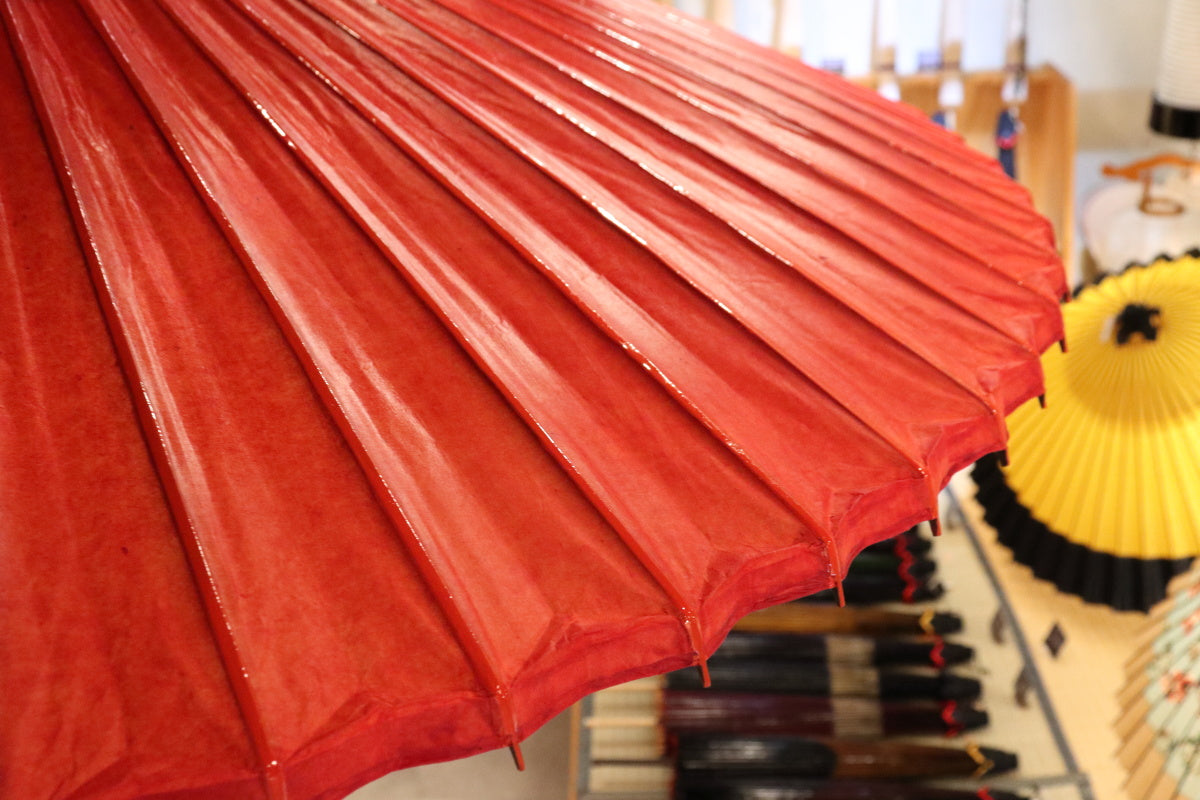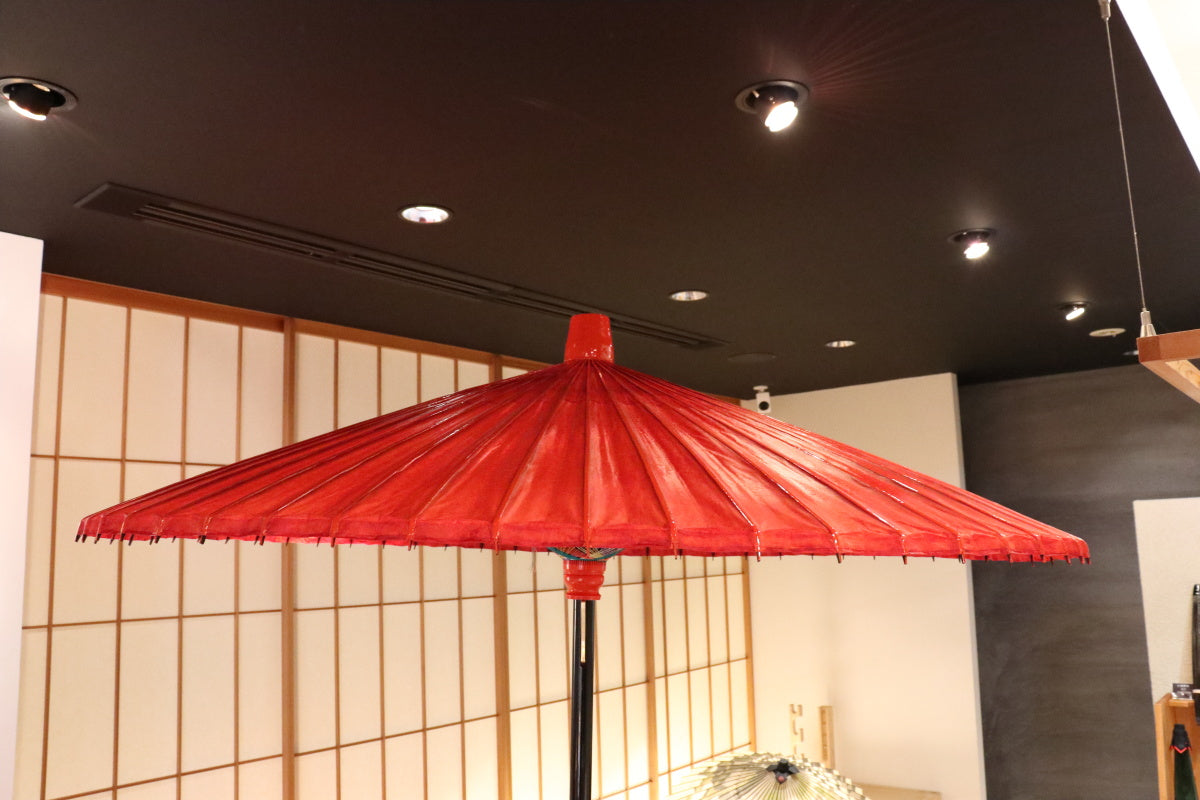 古来から生命の躍動を表し、災厄を防ぐ色とされる朱色の大傘です。
