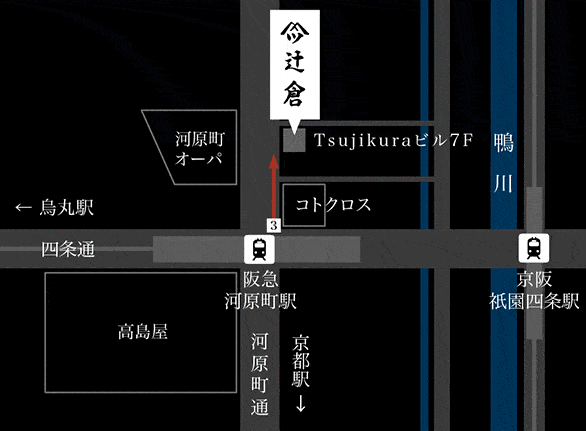 体験場所:京都市中京区河原町四条上ル東側 TSUJIKURAビル5階 阪急「京都河原町駅」3番出口より北へ徒歩3分