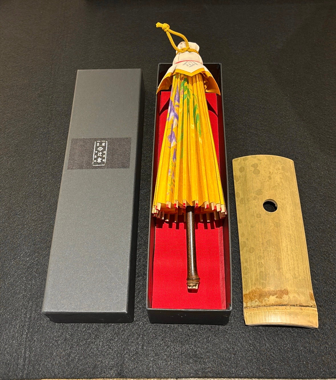 完成品 | 姫和傘の専用傘立て・化粧箱・手提げ袋をお渡し |