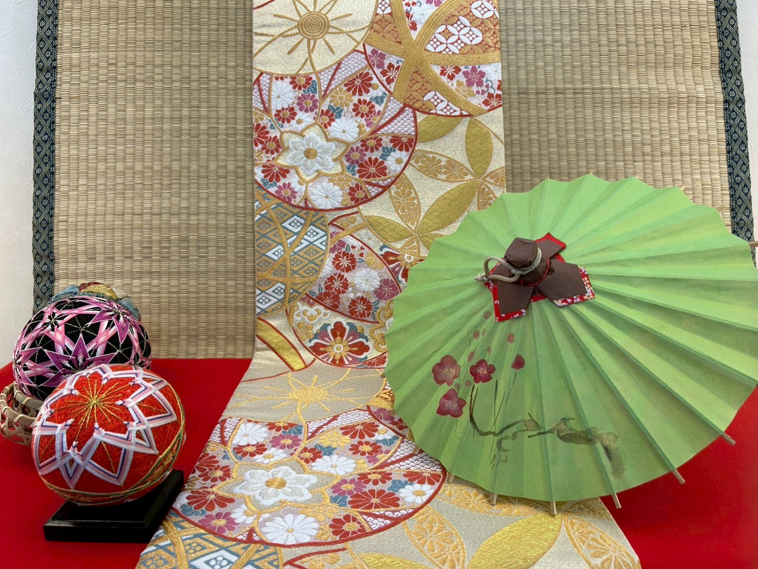 化粧箱と手提げ袋に入れて当日お持ち帰り。竹製の傘立てもご用意しております。完成品と一緒に、室内で自由に写真撮影をお楽しみください。